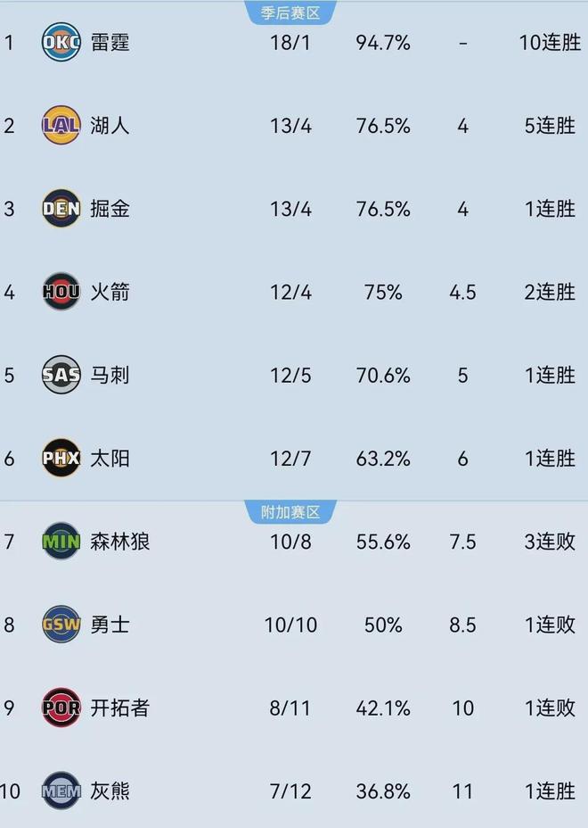 話說勇士本月中旬之后,輸?shù)窖濕米佣紱]了,近五戰(zhàn)四敗,目前以10勝10負(fù)排名西部第八,好在仍領(lǐng)先西部第11的爵士多達3.5個勝場,哪怕接下來庫里傷停一段時間,應(yīng)該也不至于在他休戰(zhàn)期間瘋狂潰敗直接掉出附加賽區(qū)域。
